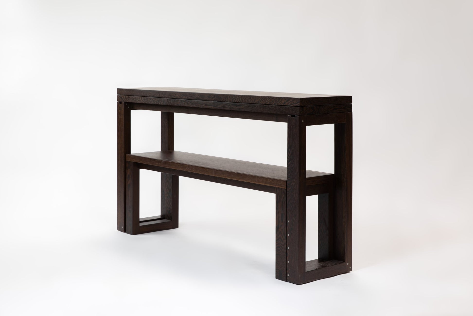 A table and bench that can be used as a desk or a table for 4. Suitable for the minimalist and those with small studio apartments. It give you the option for compact tidy living but enough to have 3 friends join you for a glass of wine.