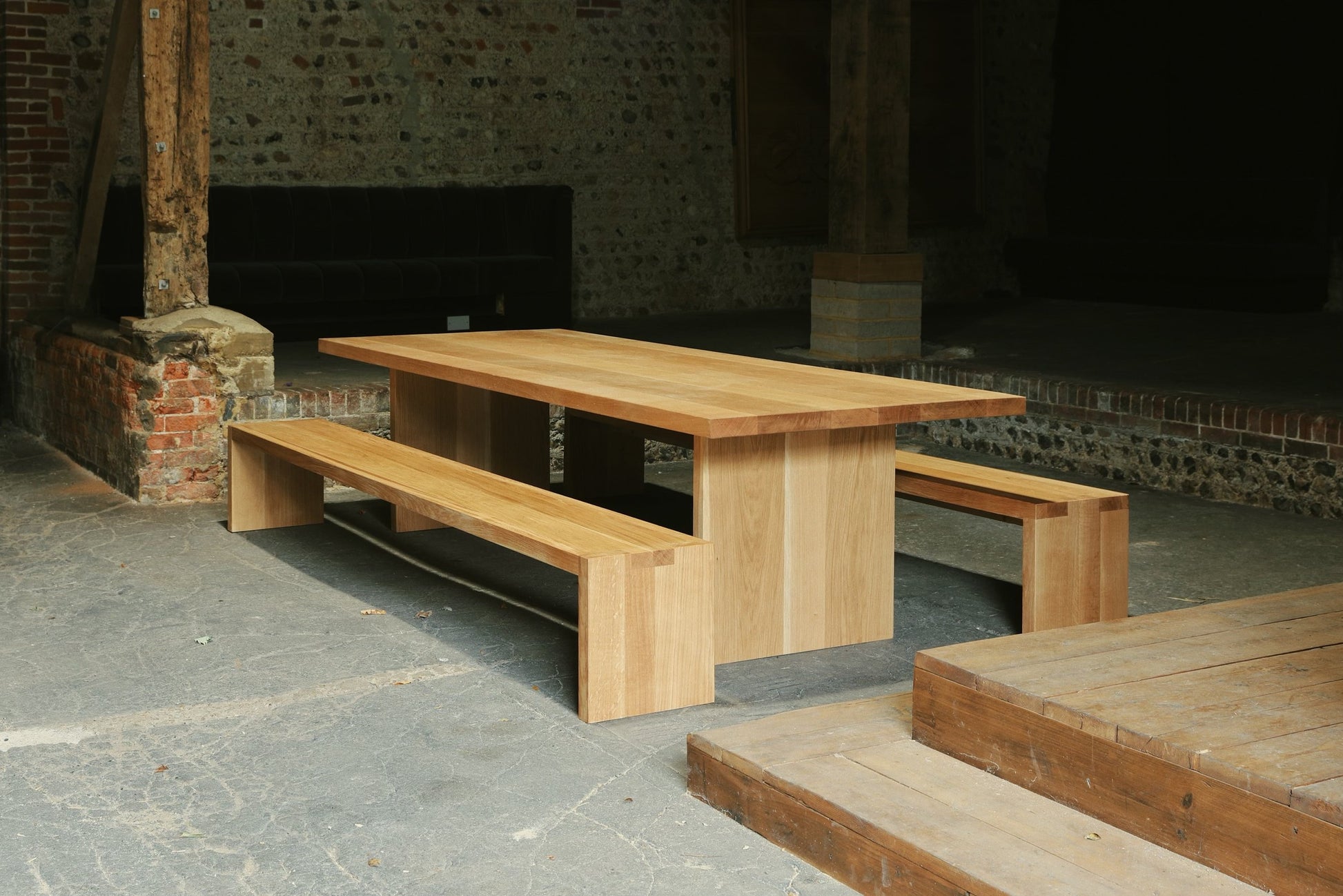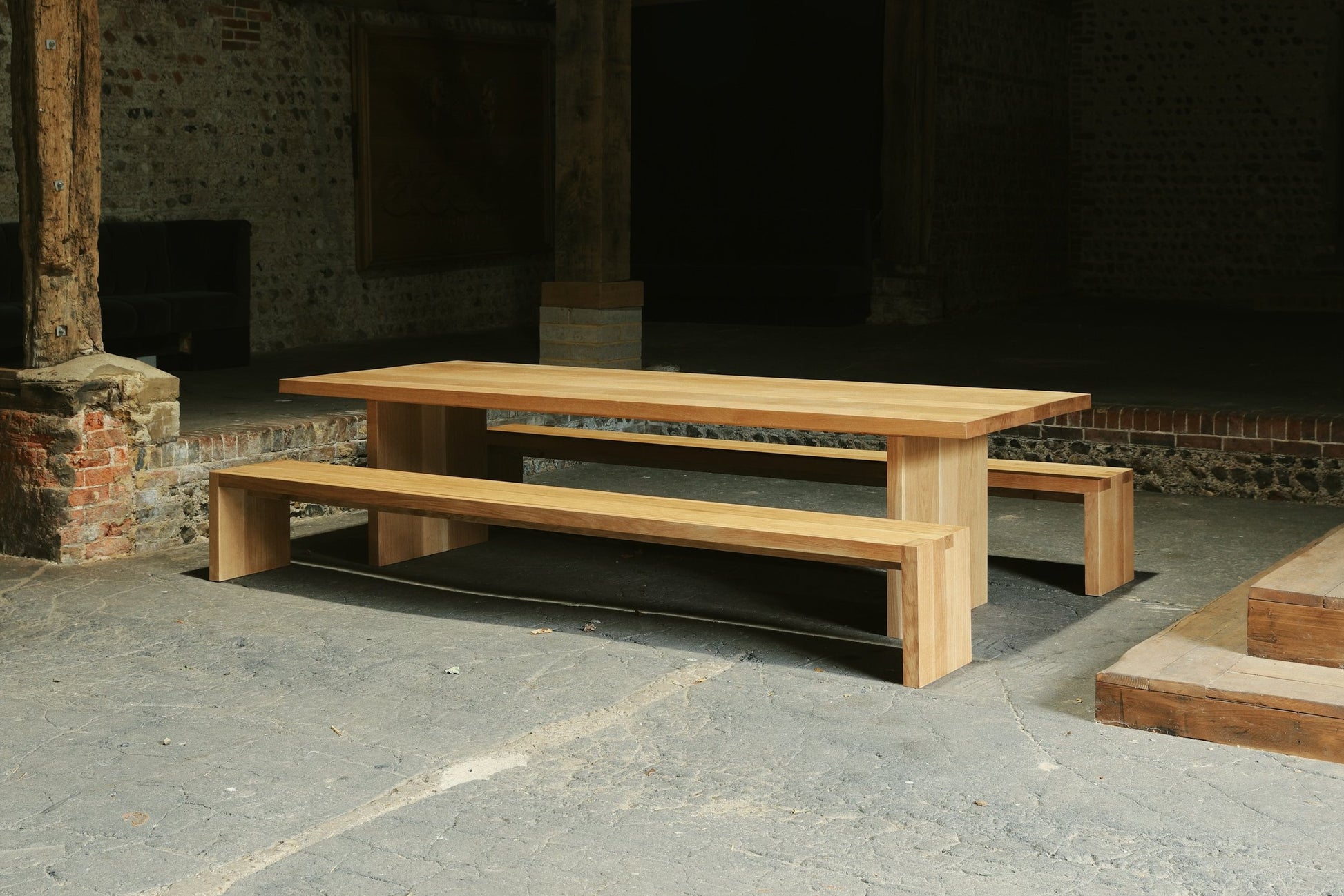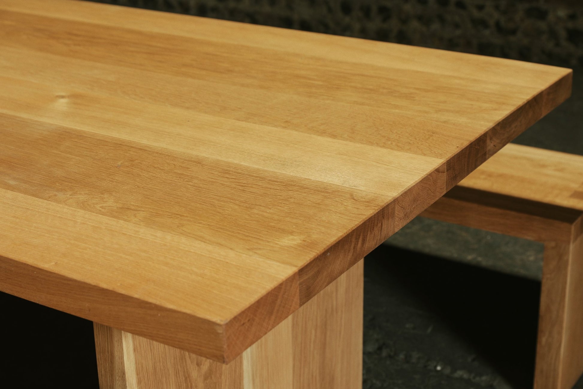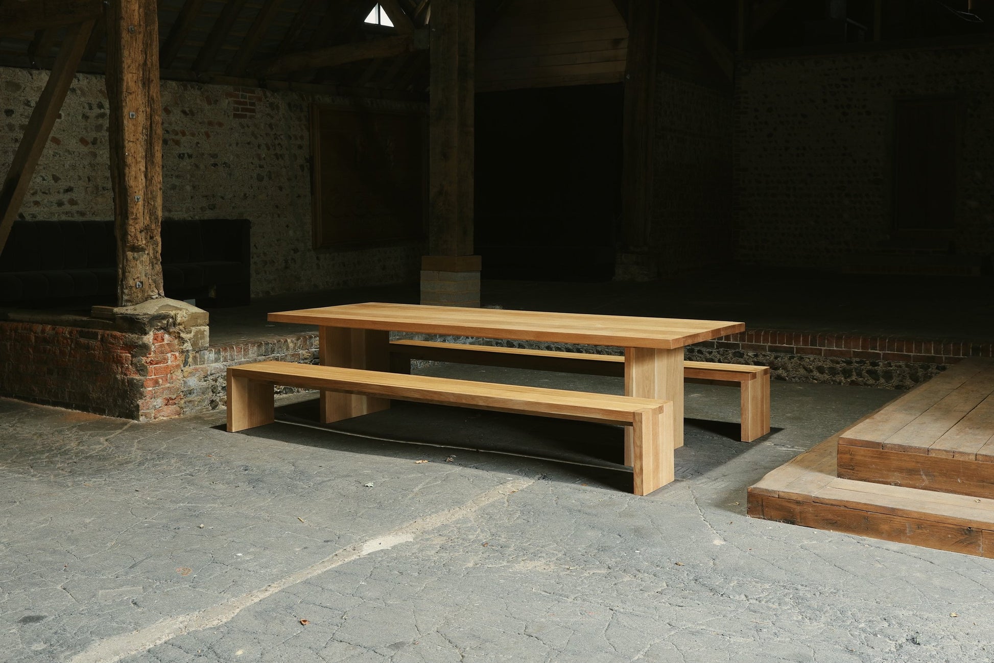 A contemporary beauty. Solid oak, handmade and lines in all the right places. Not much more needs to be said. Size of one pictured: Table 3000w 750h 1100w Benches 3000w 450w 450h