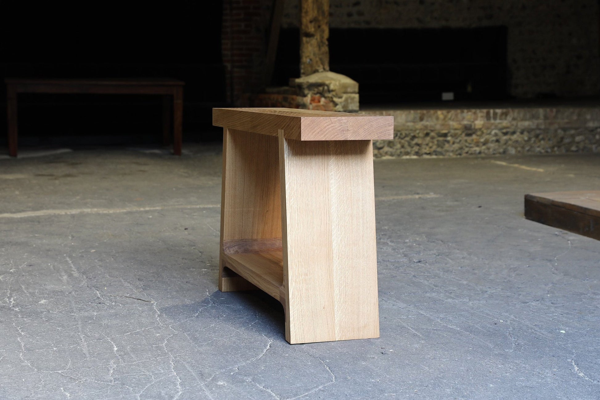 A simple yet technical piece. Hand carved curves joints made using the finest sussex oak. Size in one pictured 1100mm wide 300mm deep 750mm high. Bespoke versions available