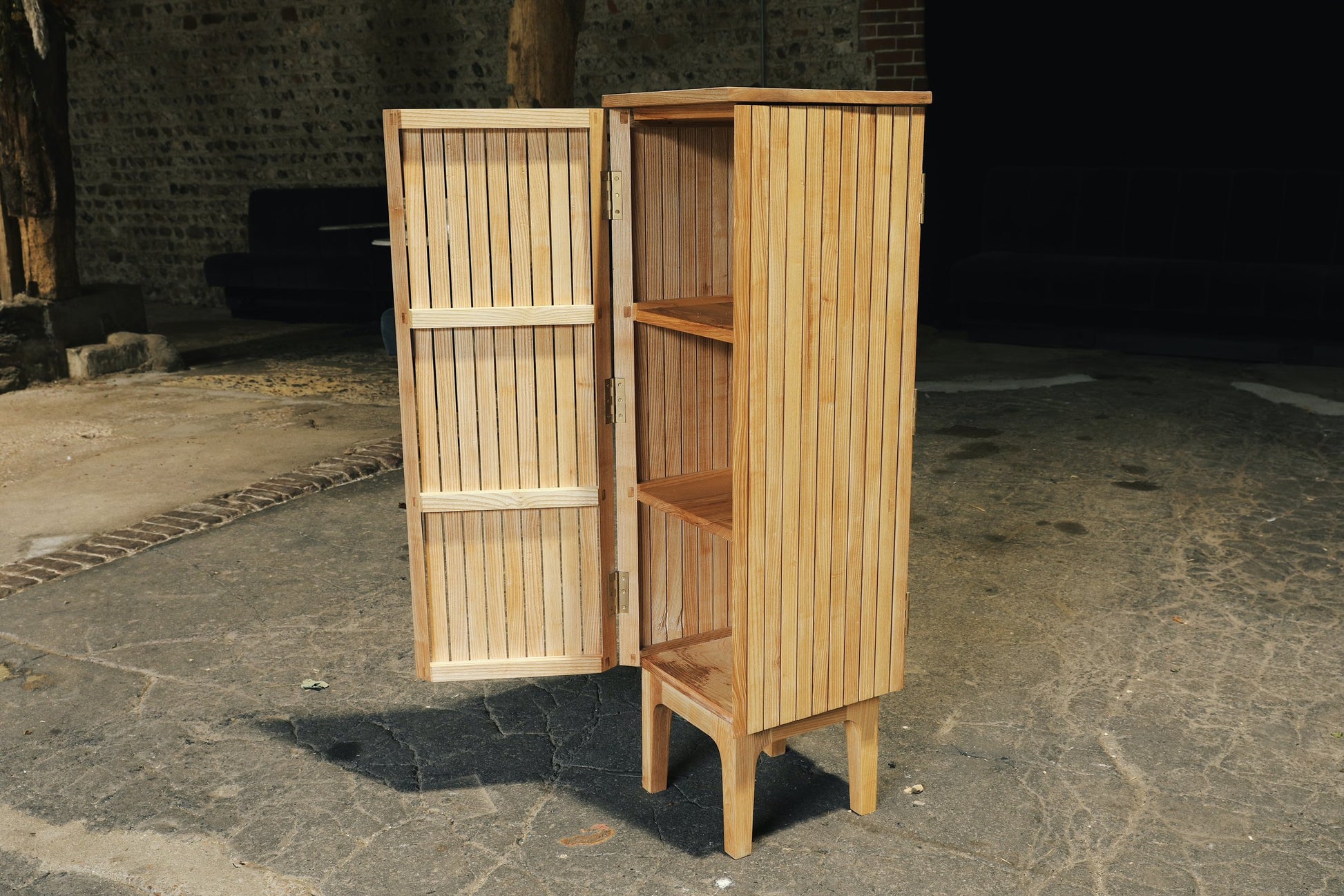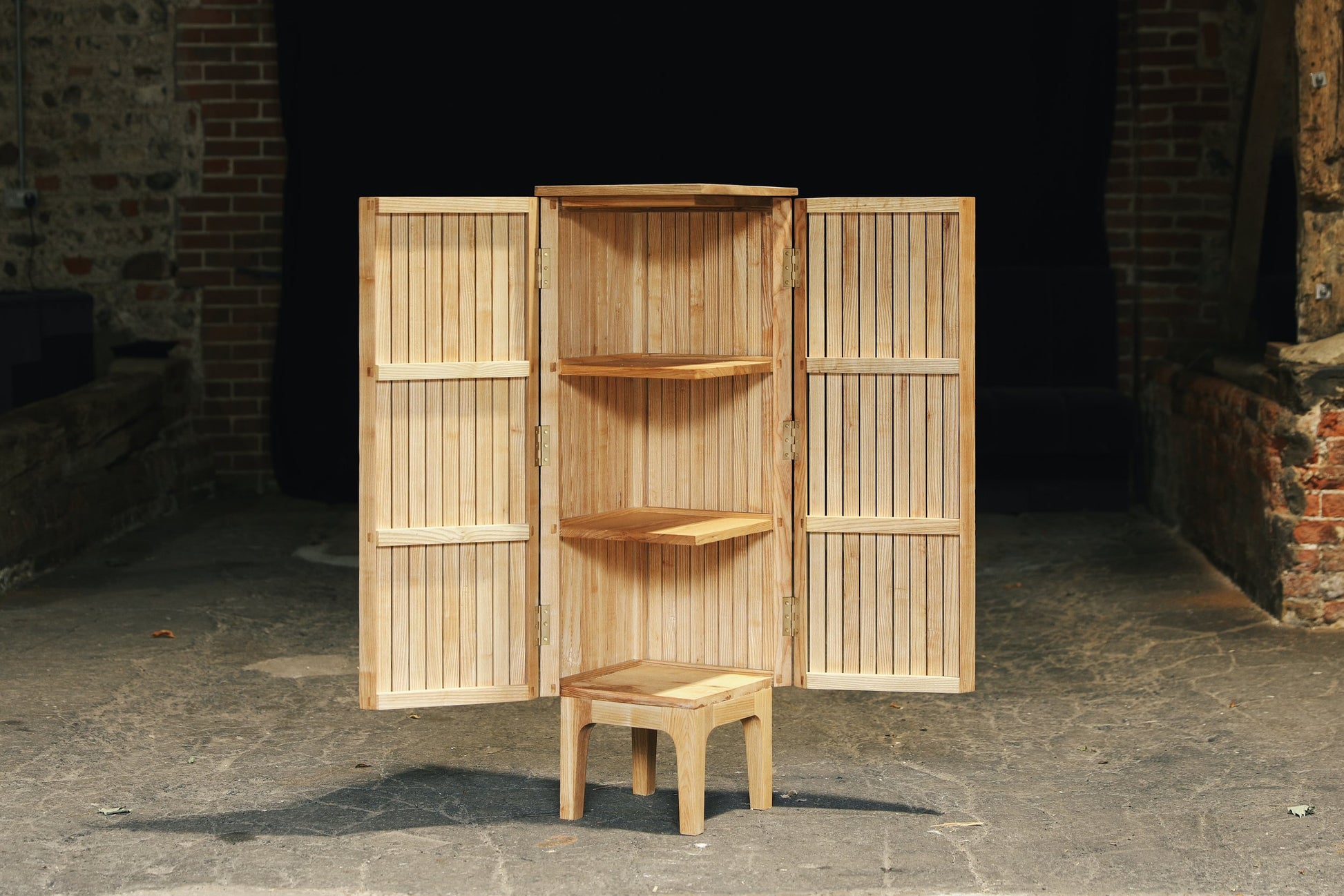 Slatted ash corner unit
