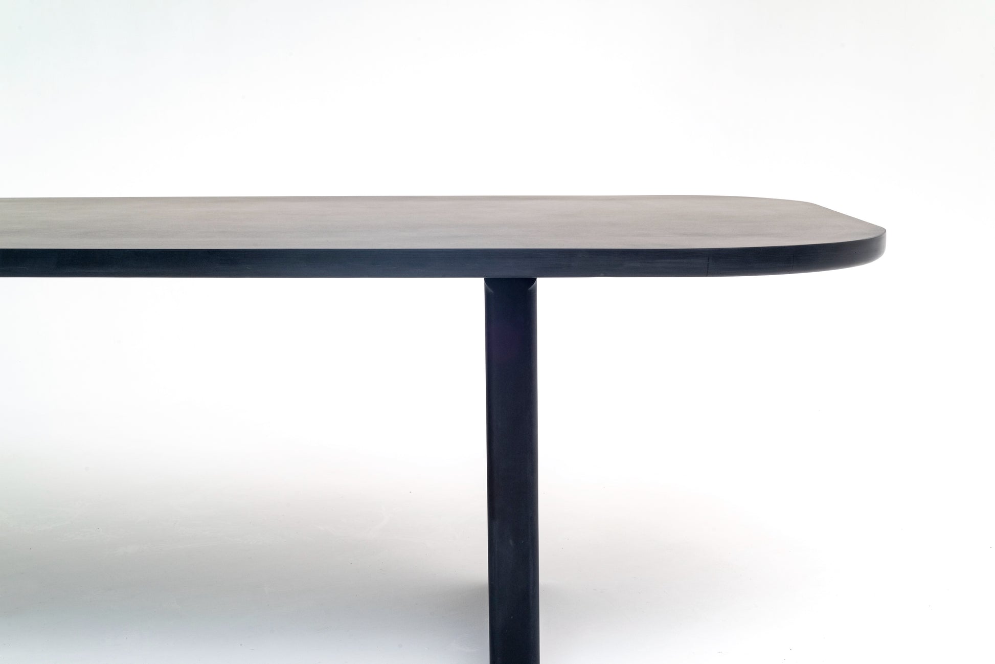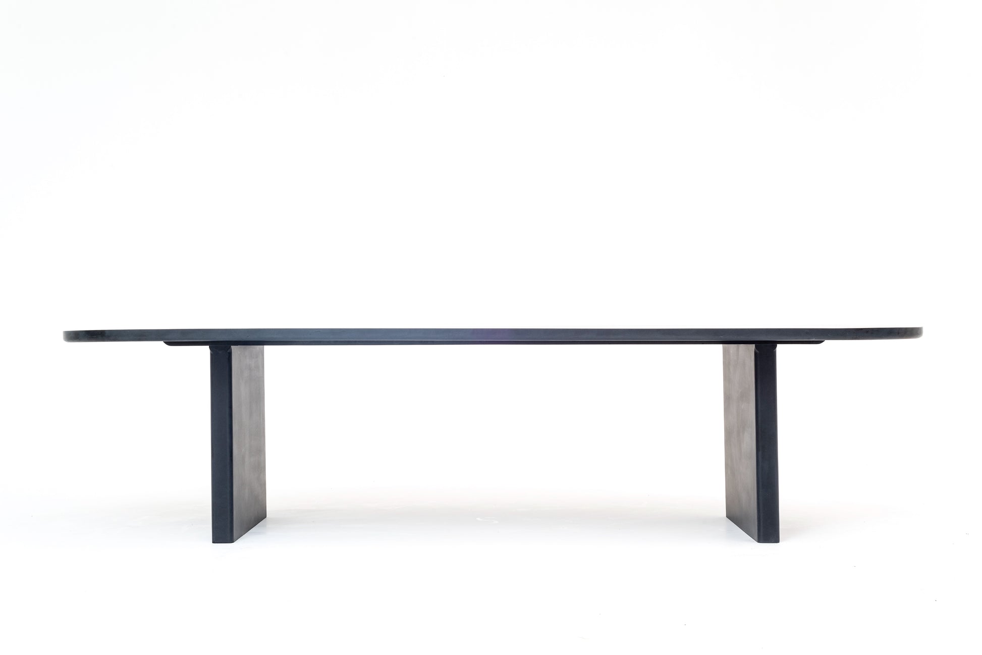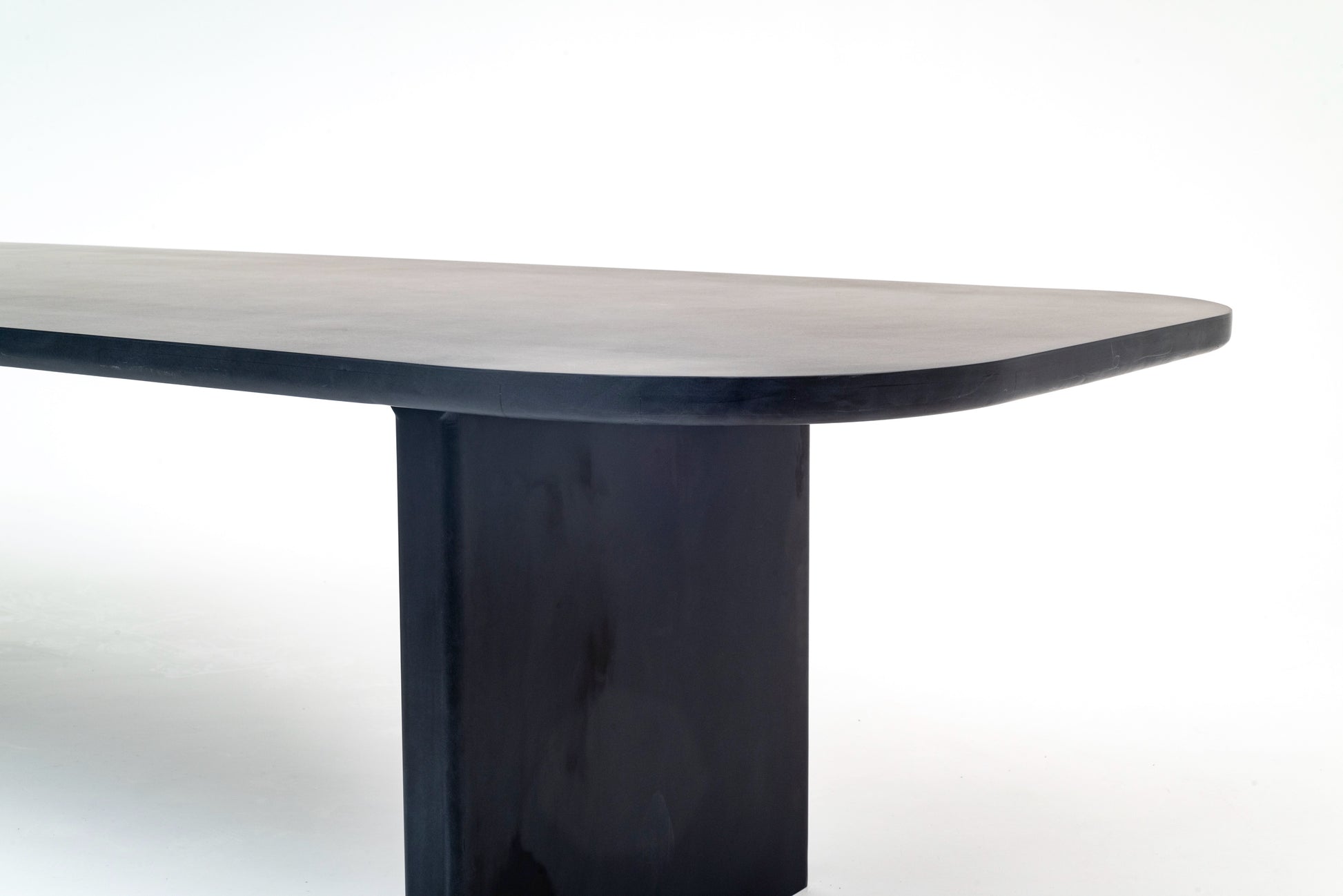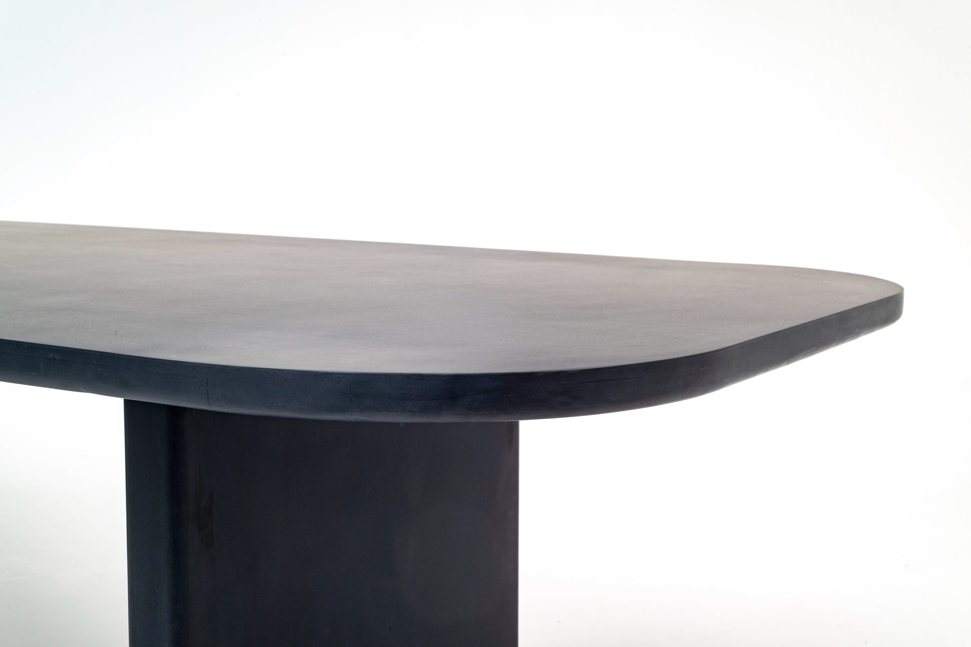 This solid surface matte black minimal table is a striking piece that seamlessly blends functionality with modern design. The sleek, matte finish exudes sophistication, making it a versatile addition to any space, whether it’s a chic dining area, a contemporary office, or a stylish living room. Also suitable for outdoor use.