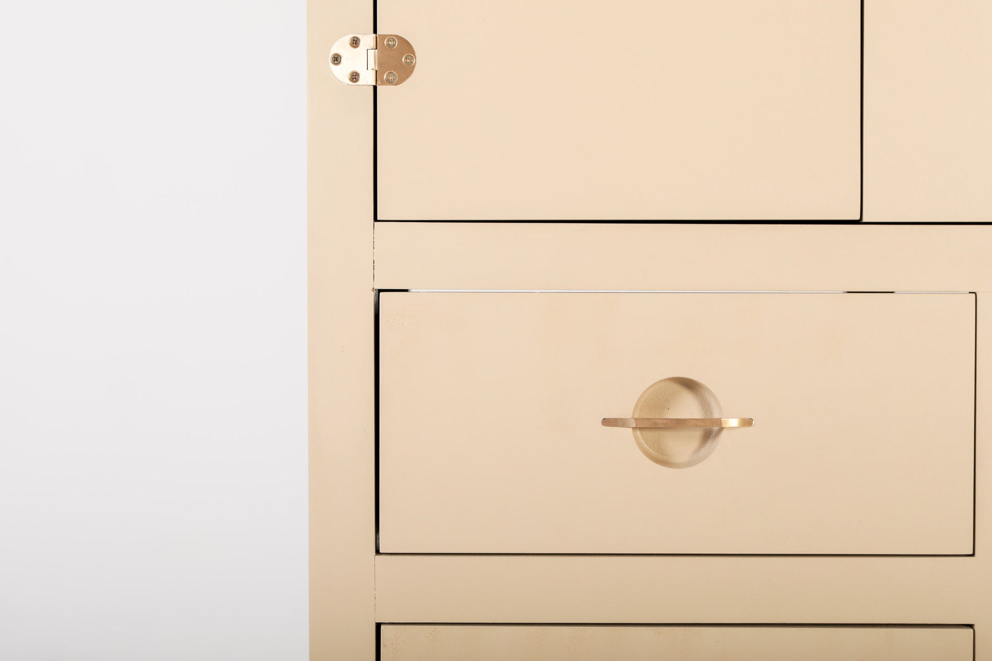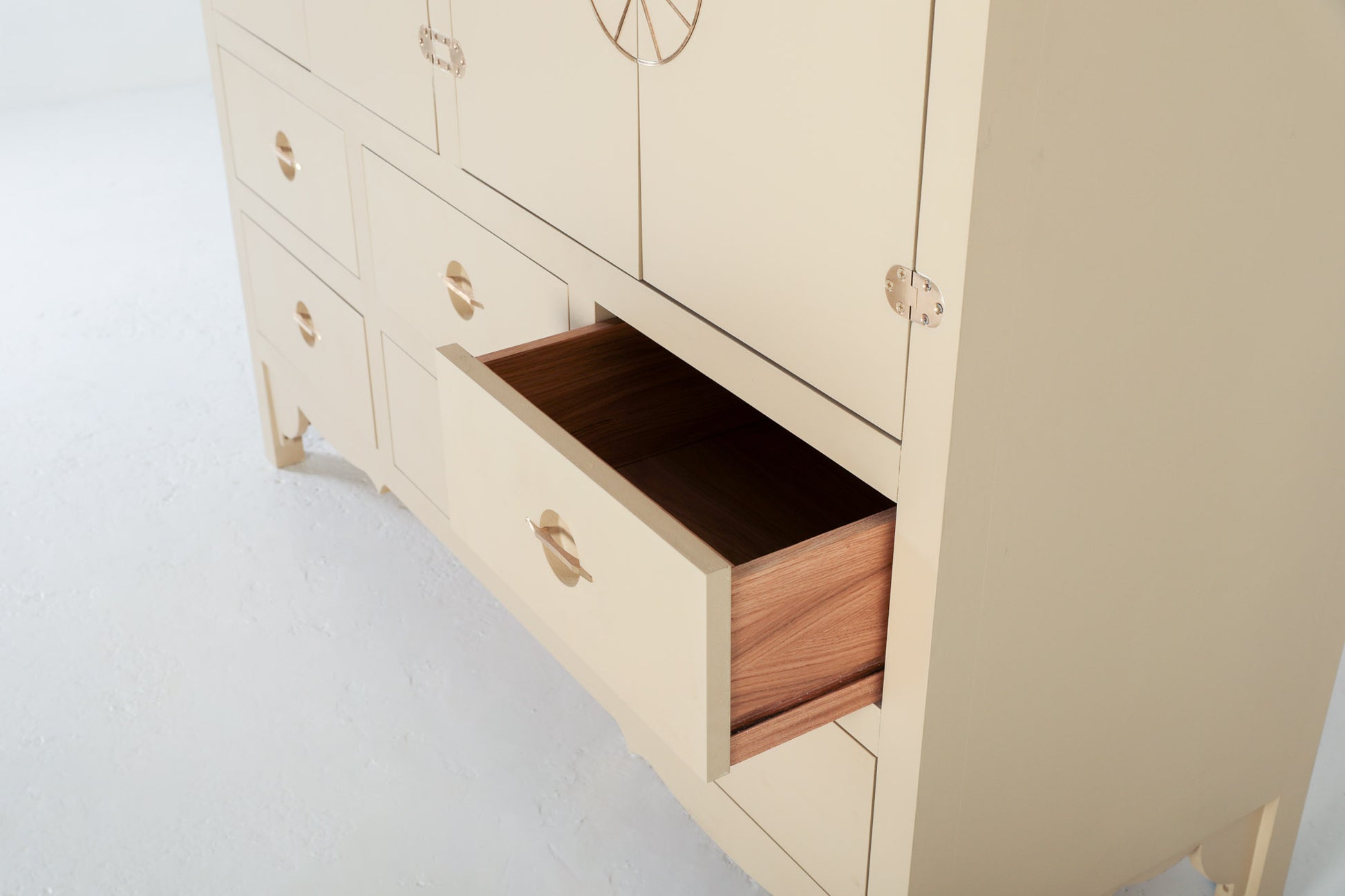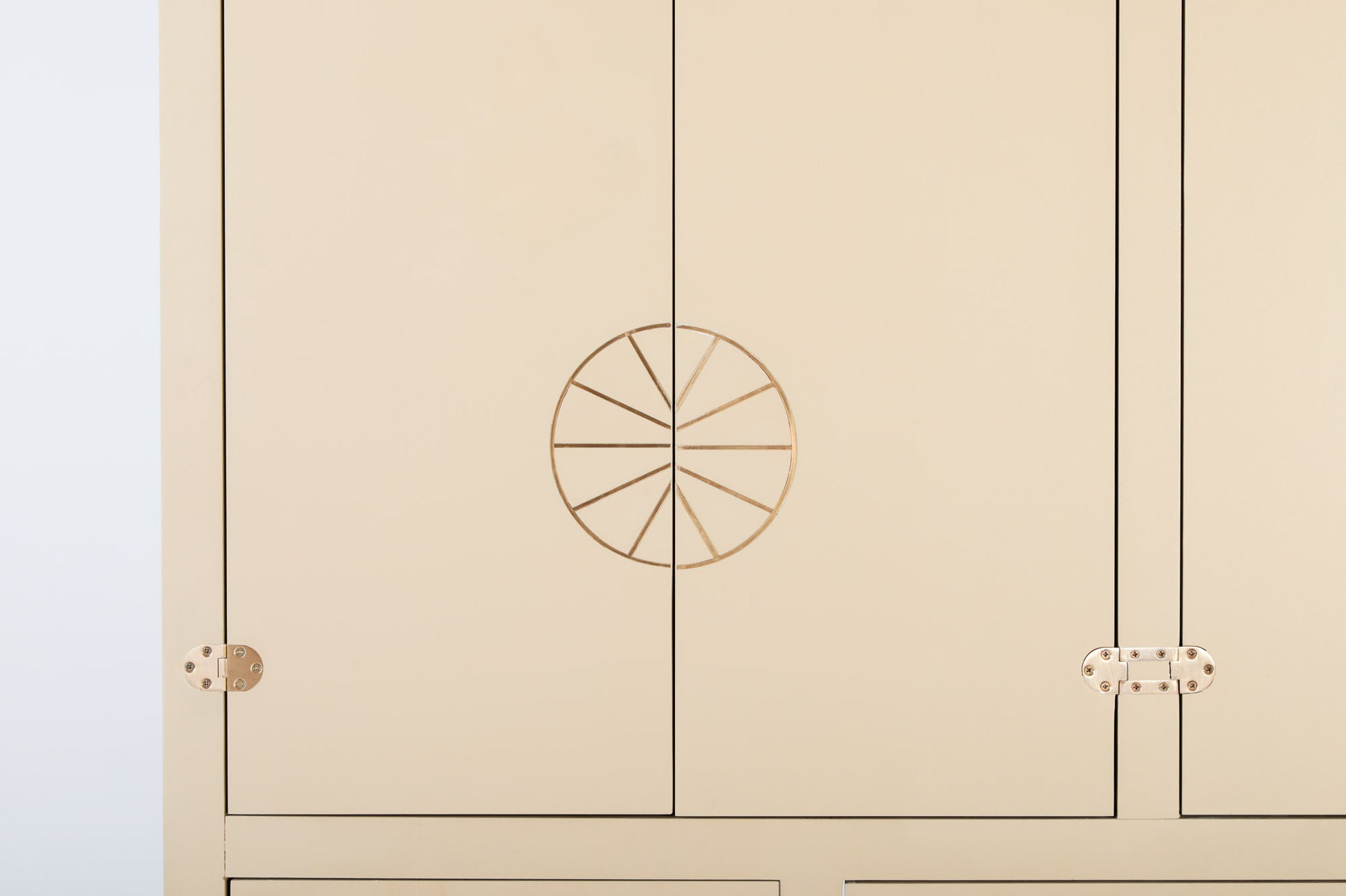 Introducing a wardrobe of unparalleled elegance: crafted from rich tulip and oak and accented with hand made brass details. Its free-standing design commands attention while blending seamlessly with any decor. With ample storage, it combines functionality with timeless beauty. Built to last a lifetime, this wardrobe is more than furniture—it's an investment in luxury and enduring style.